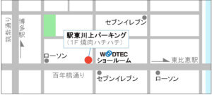 東比恵駅より徒歩5分、博多駅より徒歩10分のショールーム。