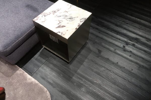 今年もたくさんのブースで家具にコーディネートされる木の床を見ることが出来ました。とくに目を引いたのは、世界的な人気を誇るイタリアのファッションブランド「DIESEL」が手掛けるホームコレクション「DIESEL LIVING」のブースです。8つ程の独立した部屋にそれぞれ床が貼り分けされており、そのどれもが独創的な色とデザインになっていました。ここではインテリアにおけるカラー要素としての木の床の可能性とともに、床によって空間のイメージが大きく変わることをあらためて感じました。