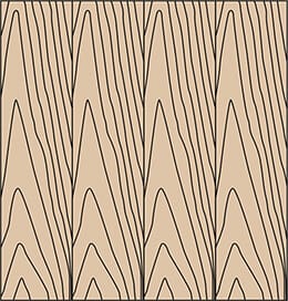 そして、今年顕著に見られたのが、木目をデザインパターン(模様)として使う意匠です。突き板で、ブックマッチやスリップマッチなどの伝統的な貼り方をしたり、あえて、同じような木目をリズミカルに並べて魅せる意匠表現が多くのブランドでみられました。木質仕上げに置ける大きなトレンドの流れとしては、ランダムなラスティックデザインから厳選された木目をきれいに配置するデザインに移り変わってきているようです。