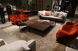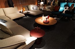 また、例年以上に家具単体ではなく空間として提案するブランドが多く見られたのも特徴でした。それでは、インテリア全般のカラートレンド、そしてフローリング総合研究所の視点でみた、木質トレンドについて報告いたします。
