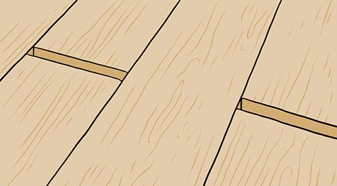 冬場などはフロアが乾燥して縮むため、フロアの継ぎ目部分で若干のスキ間があいてくることがあります。逆に湿気が高い時期が続くと、フロアが伸びて継ぎ目部分が突き上がることもあります。