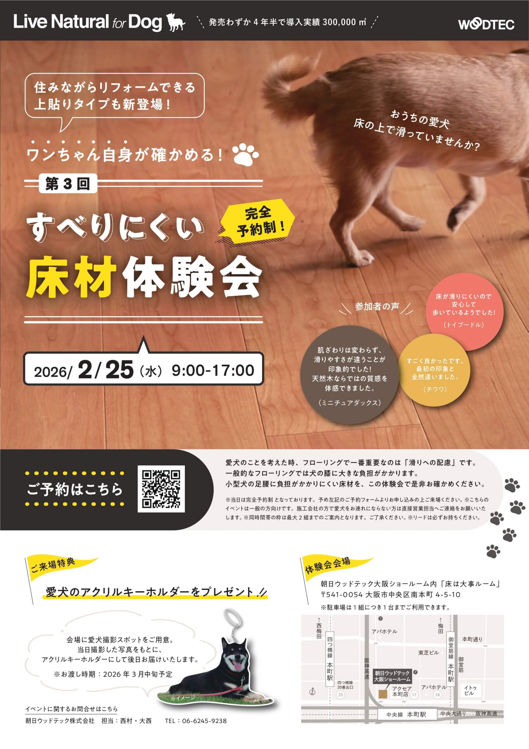 大阪ショールームで、犬に優しい滑りにくさをプラスした天然木フロア Live Natural for Dog 体験会[第3回]を開催します。