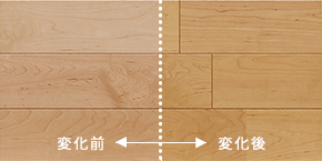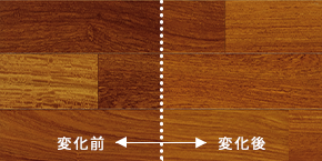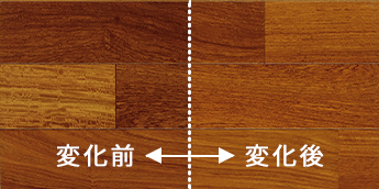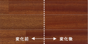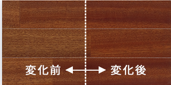 - ●天然銘木は年月を経る中で太陽光や照明などの光や熱の影響により、濃度が増したり、薄くなったり、様々に変化します。写真は開発研究所での実験サンプルの例です。