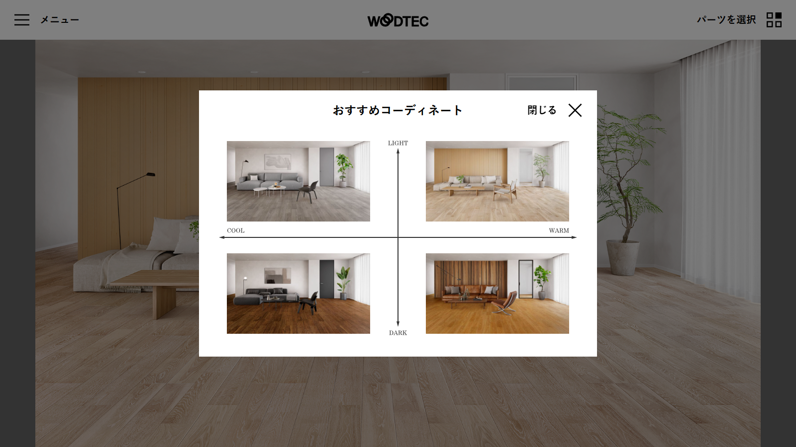 住宅タイプや下地などの条件や自分の好みにあったフローリングを検索できます。