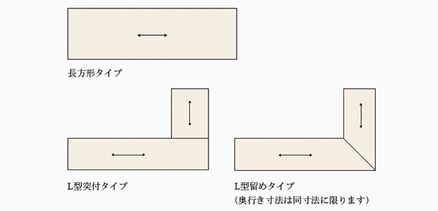 最大、長さ2,700㎜×奥行き1,050㎜まで対応可能。形状パターンに合わせてサイズをお決めください。