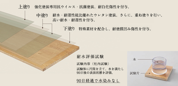 今まで本物の木を使うことを諦めていた水廻りからデスクまでご使用いただけます。
