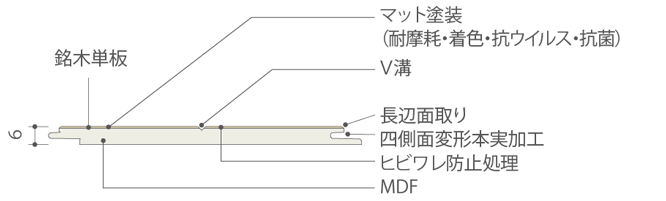 リフォームの際、今ある床材の上に重ね貼りする簡単&省施工で環境にもやさしいレイヤー工法に最適の薄型フローリングです。新しい床材を貼って、住まいも気分もリフレッシュしたい。そんな方に最適です。一般の床材の約半分の厚さなので、改装してもほぼ同じ天井高が確保できます。