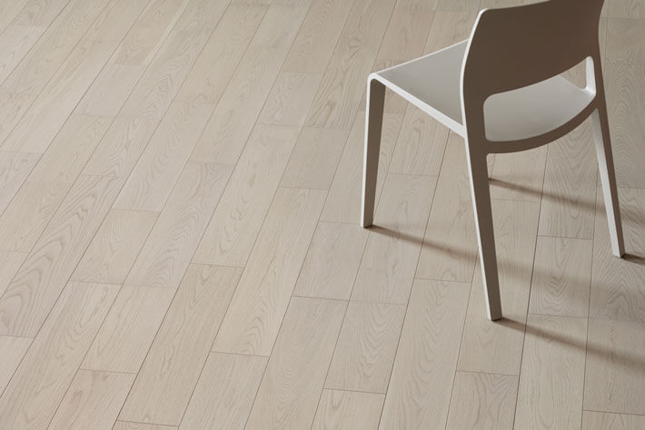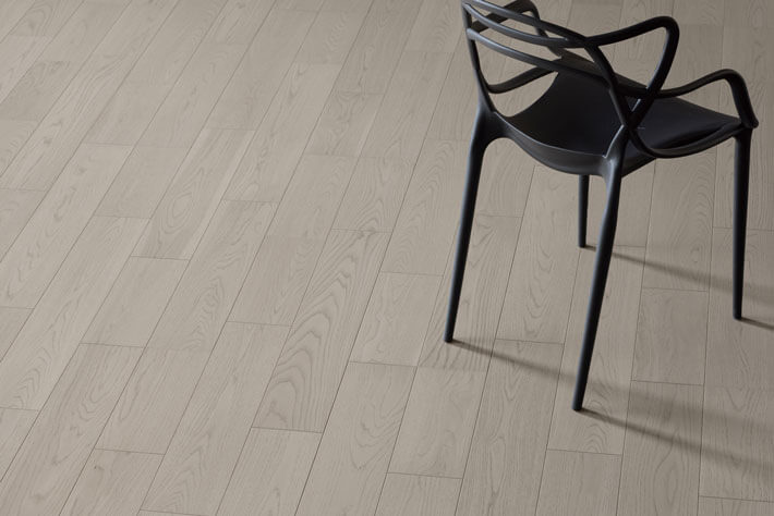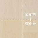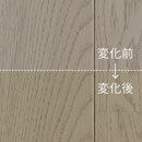 板目に強く現れる筍模様、柾目に現れる横縞状の斑(ふ)を特徴とするオークの乾燥した無垢材が持つ柔らかな色合い・風合いを表現しました。