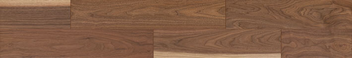 濃淡の縞模様を成す柾目、変化に富む紫褐色の板目を特徴とするブラックウォルナットの乾燥した無垢材が持つ柔らかな色合い・風合いを表現しました。