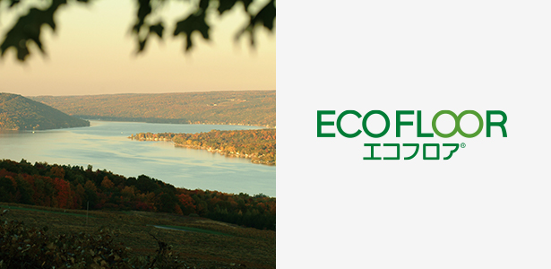 ライブナチュラルプレミアムの無垢材挽き板部分には、適切に管理された天然更新林のアメリカ広葉樹と北緯45°近辺に分布している世界各地のオーク、基材部分には環境に配慮した植林木を使用。環境に配慮した「エコフロア」です。