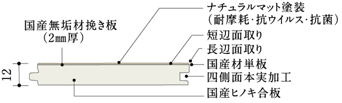| 2Pフラット | 12×145×1,818 | 12枚(約1坪=3.16㎡)入 |