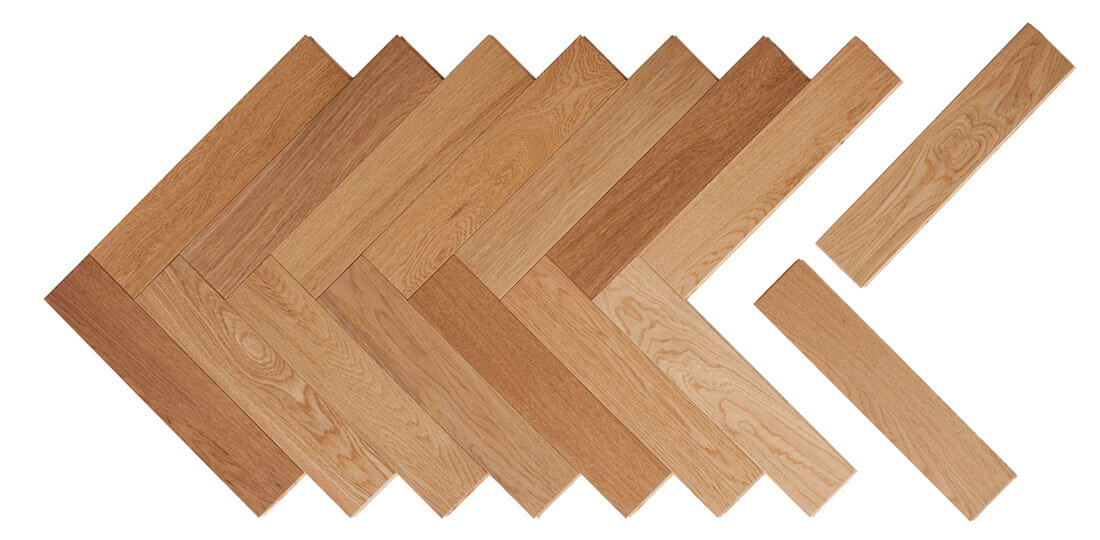 天然木のフローリングは、見る角度や光を受ける向きによって表情が変化します。ヘリンボーンでは、V字型に施工する特性上、表情の変化が顕著に現れることがあります。