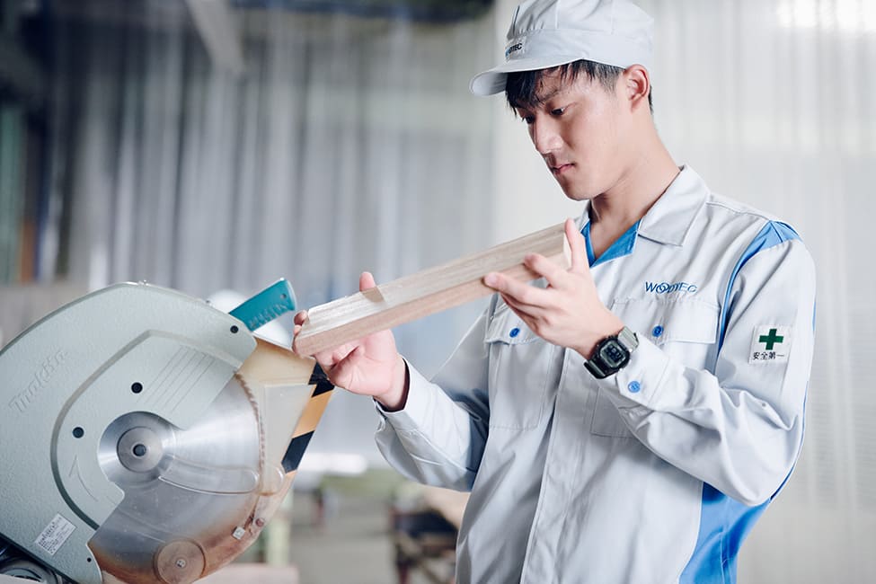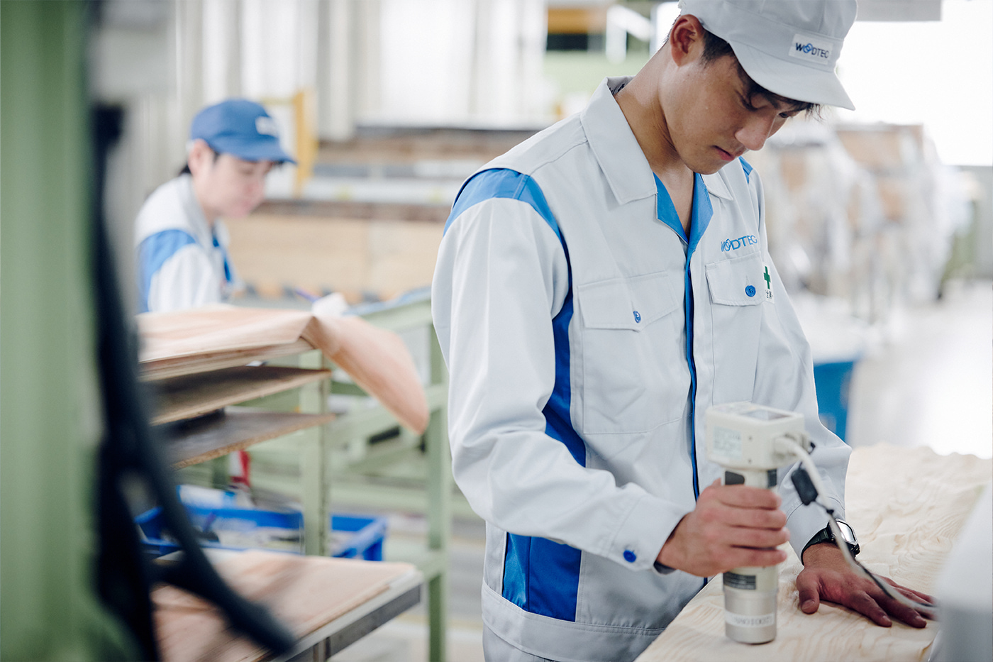 昨年は、不良の救済・補修方法の確立というテーマを商品部とともに検討し、今まで不良となっていた挽板を補修して、良品挽板にする技術を確立することができました。 その際には、商品部と連携して今の不良の実態調査や補修に使用する材料の選定、さらには過去の補修結果の整理を何度も行いながら検討を行いました。失敗を何度もしながら補修方法を確立できたので、一生記憶に残る業務です。